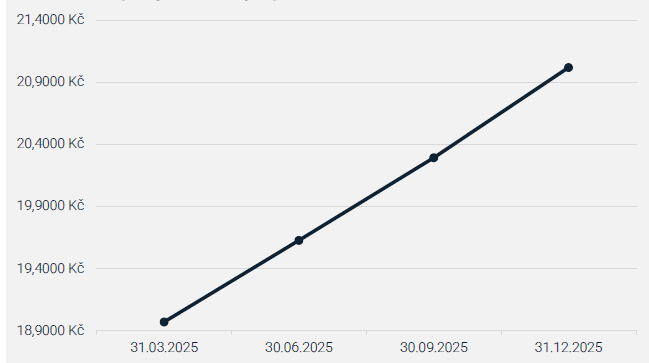 Hodnota výkonnostní investiční akcie k 31.12.2025 - 21,0182 Kč